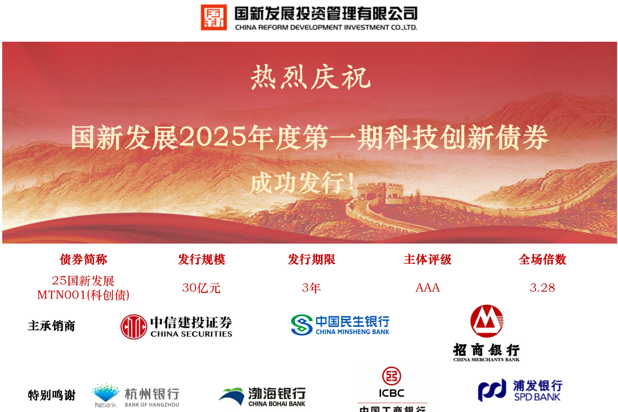 國新發(fā)展成功發(fā)行30億元科技創(chuàng)新債券